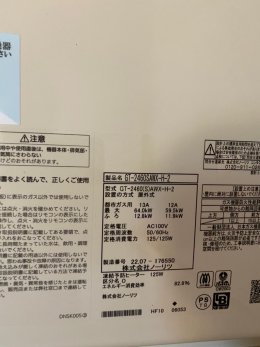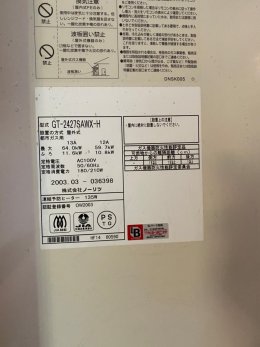 ノーリツ製の24号オートタイプ、追焚機能付きのふろ給湯器です。
