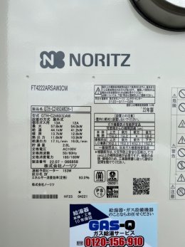 ノーリツ製の24号のエコジョーズ、フルオートタイプ 追焚・暖房機能付きのふろ給湯器です。