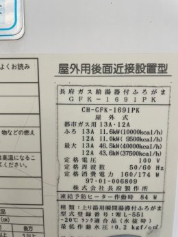 エコジョーズの追焚機能付きふろ給湯器です。