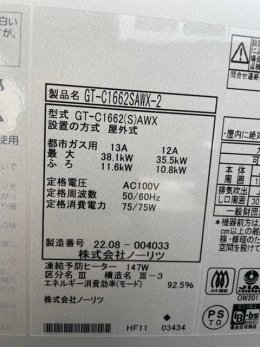 16号の給湯器です。