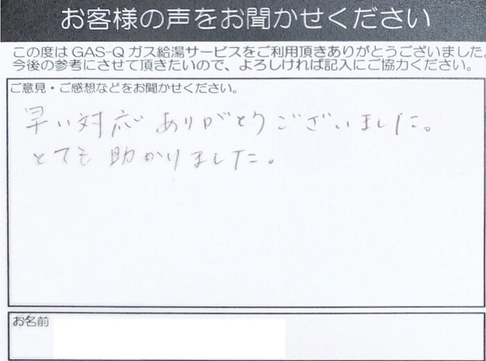 2020.12.20 お客様の声 神戸市垂水区 匿名 この度は弊社に交換工事をお任せいただき誠にありがとうございます。 お問い合わせから交換工事まで スピーディーに行うことができたのも しっかり打ち合わせができたおかげです。 お客様のお役に立つことができて 大変うれしく思っております。 貴重なお時間ご意見ありがとうございました。