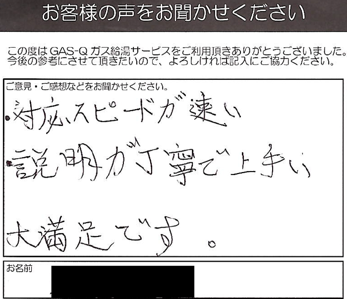 ・対応スピードが速い ・説明が丁寧で上手い 大満足です。