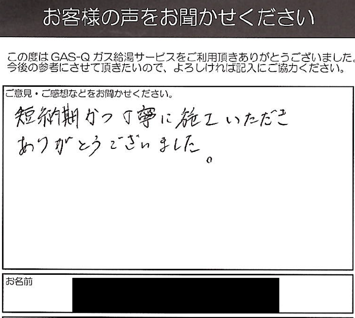 短納期かつ丁寧に施工いただき ありがとうございました。