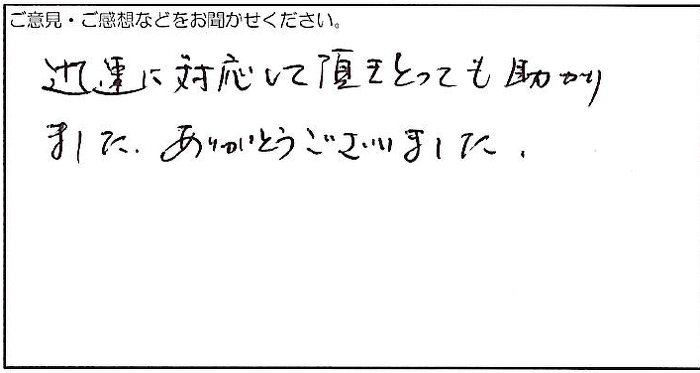 迅速に対応して戴きとっても助かりました。ありがとうございました。