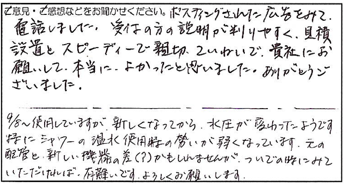 9/8~使用していますが、新しくなってから、水圧が変わったようです。