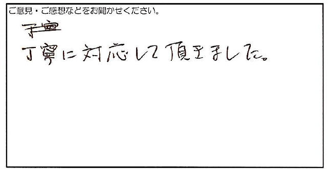 2024.09.16 お客様の声 伊丹市 匿名様 丁寧に対応して頂きました。 お客様へ この度は弊社にご依頼いただき、誠にありがとうございます。 温かいお言葉に感謝申し上げます。 今後ともよろしくお願い申し上げます。