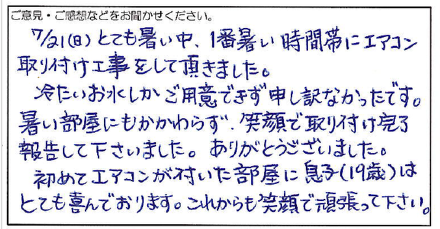 7/21(日)とても暑い中、1番暑い時間帯にエアコン