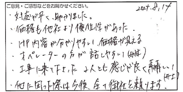 ・対応が早く、助かりました。
