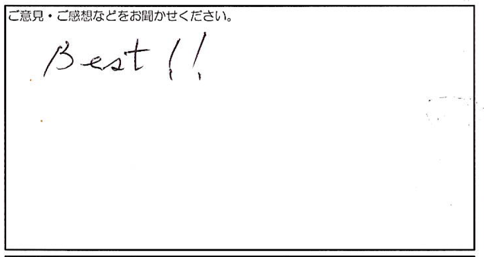 2025.01.13 お客様の声 大阪市 福池様 Best!! お客様へ ありがとうございます! ご満足いただけてとても嬉しいです。 今後も何かご不明点があれば、いつでもお気軽にご連絡ください。 またのご利用をお待ちしております!