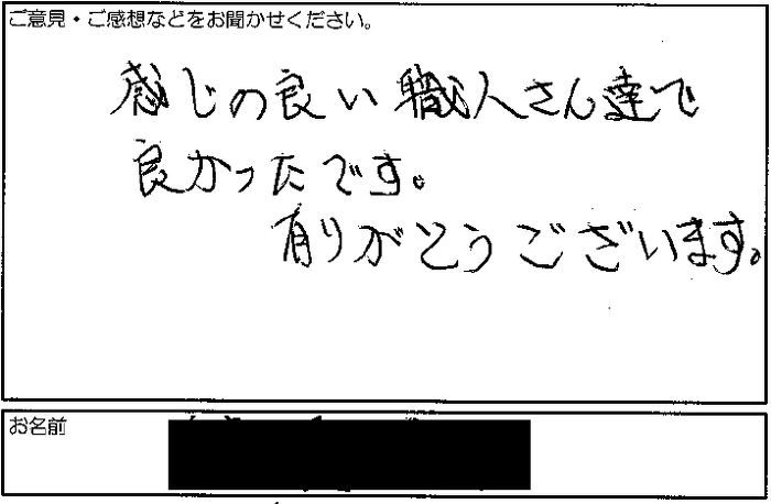 感じの良い職人さん達でよかったです。ありがとうございます。