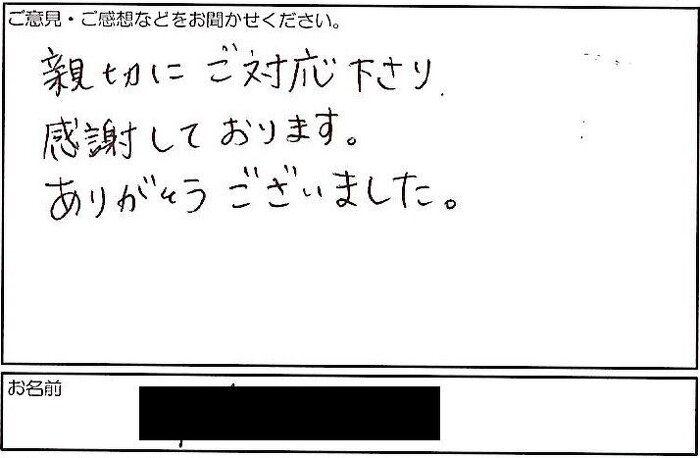 新設にご対応下さり、 感謝しております。 ありがとうございました。