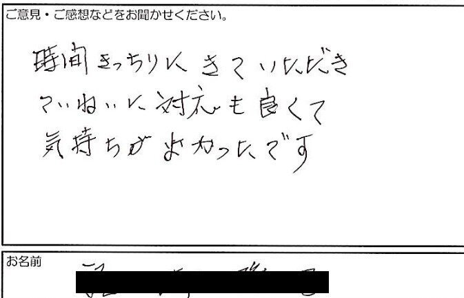 時間きっちりに来て頂き ていねいに対応も良くて 気持ちがよかったです