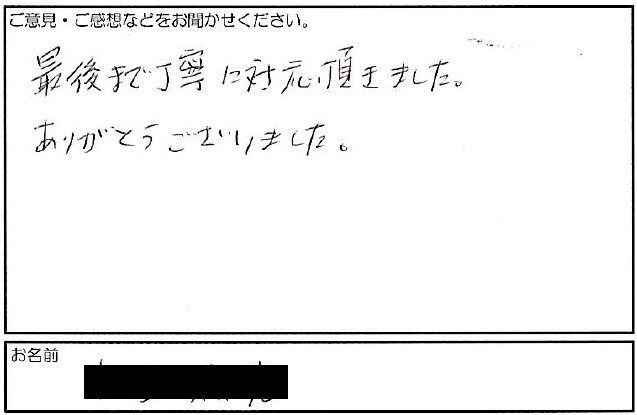 最後まで丁寧に対応して頂きました。 ありがとうございました。