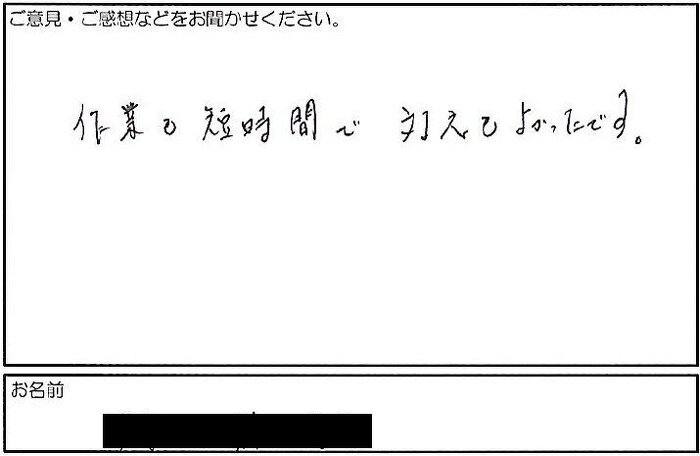 作業も短時間で対応もよかったです。