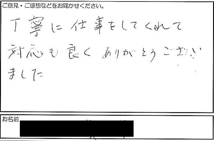 丁寧に仕事をしてくれて 対応も良くありがとうござい ました