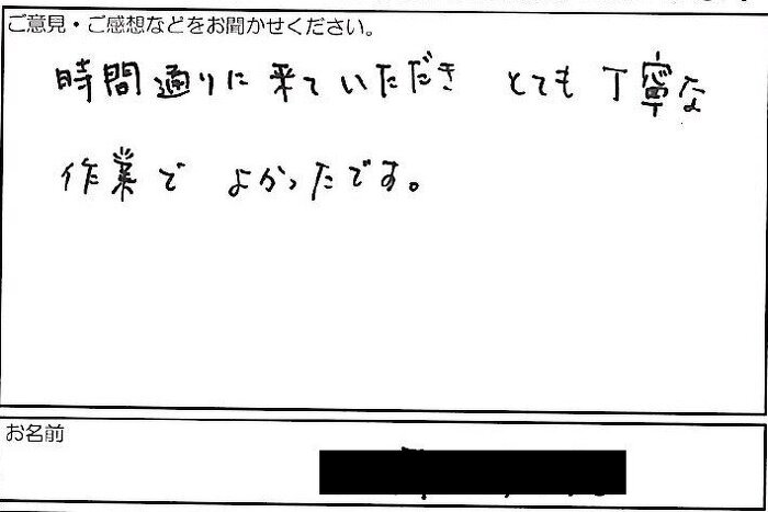 時間通りに来ていただきとても丁寧な 作業でよかったです。